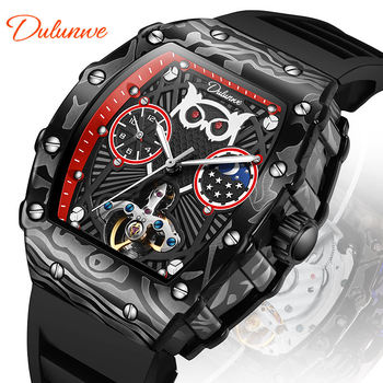 DULUNWE 6039C Patrón de fibra de carbono Tendencia Reloj de pulsera mecánico Silicona Luminoso Impermeable Relojes automáticos Reloj de moda para hombres