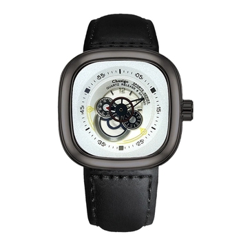983 Poedgar นาฬิกาควอตซ์สำหรับผู้ชาย, นาฬิกาหนังแท้นาฬิกาควอตซ์ส่องสว่างกันน้ำทรงสี่เหลี่ยมหรูหรา